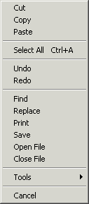 The editor functions are accessed by the main menu